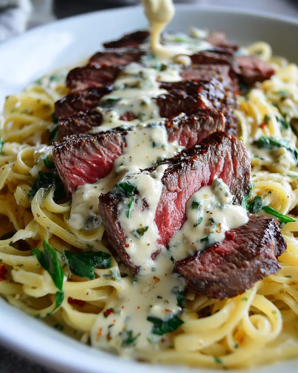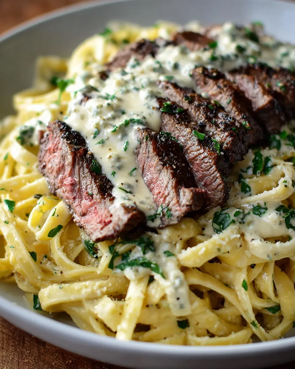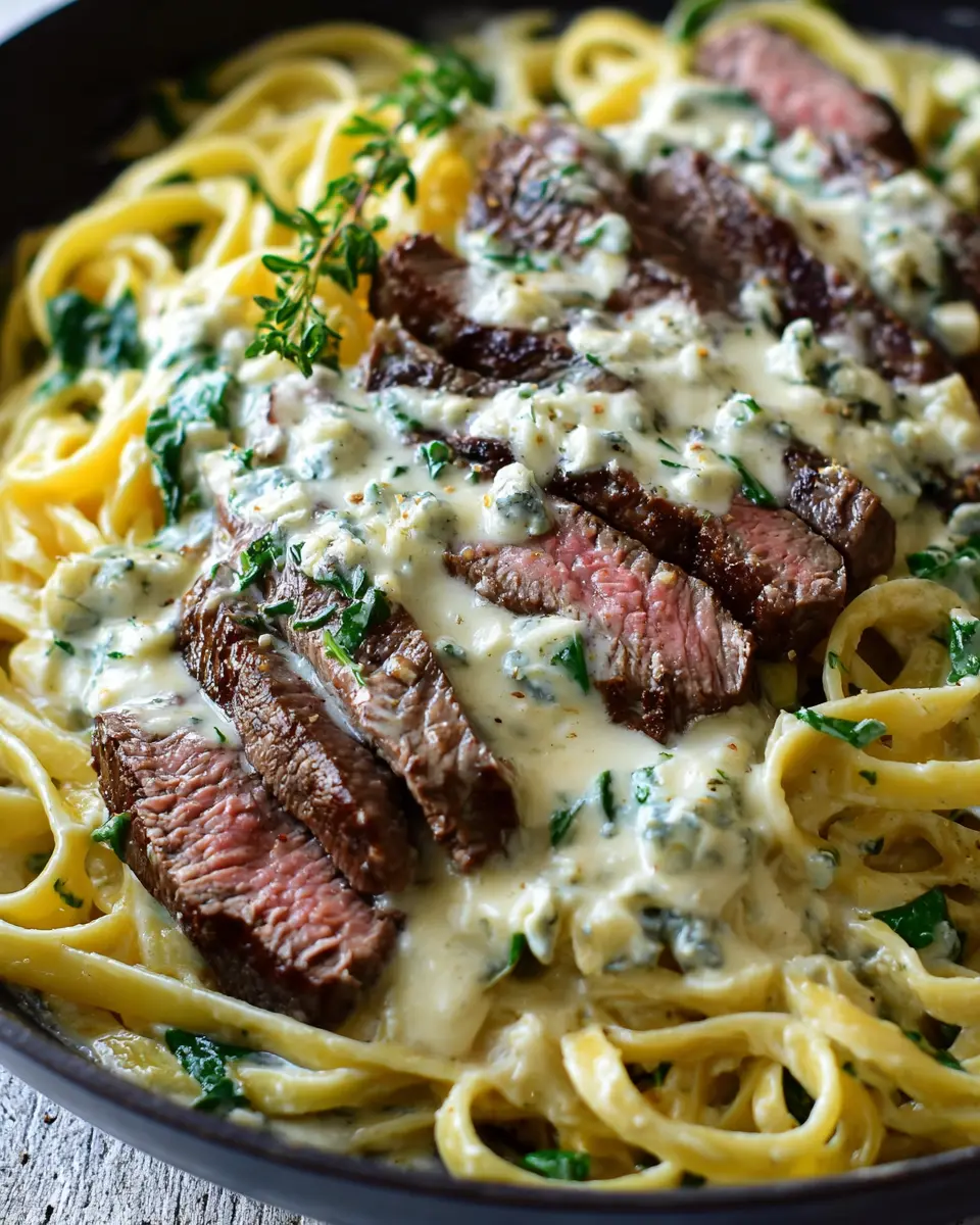 Savory Steak Gorgonzola Alfredo with Creamy Parmesan Sauce