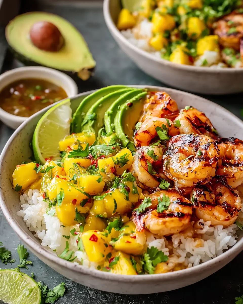Shrimp and Avocado Bowls with Mango Salsa & Lime-Chili Sauce