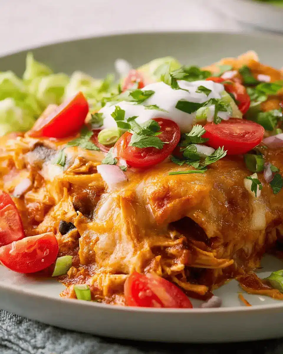 The slow cooker chicken enchilada casserole is an unbeatable choice for busy weeknights. With its melt-in-your-mouth chicken, vibrant flavors, and minimal prep, it’s both comforting and convenient. Enjoy customizing it with fresh toppings and relish every delectable bite—your taste buds will thank you! Happy cooking!