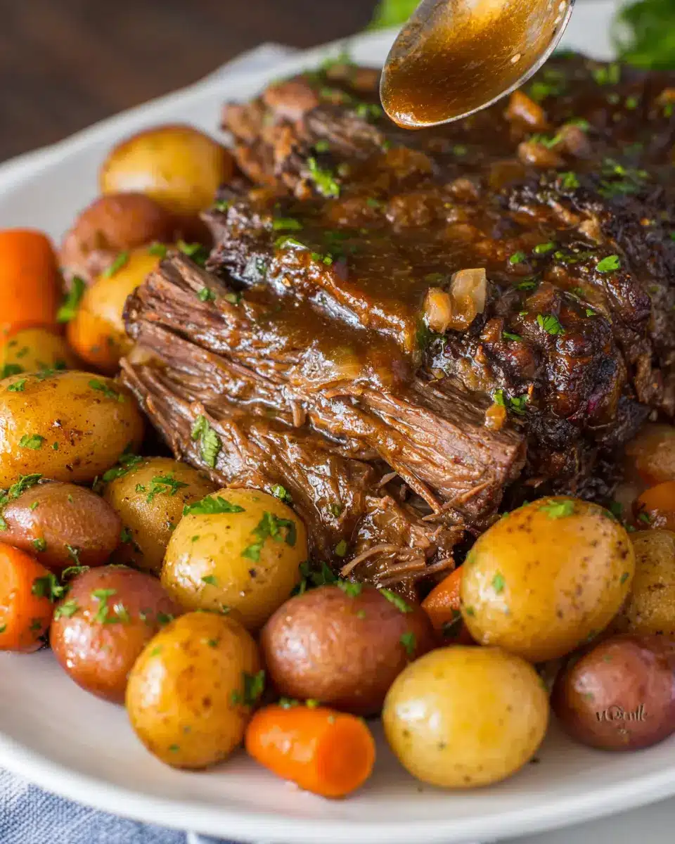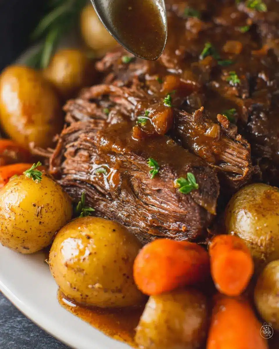 In conclusion, this slow cooker pot roast recipe delivers hearty flavors, tender meat, and delicious gravy, making it an ideal main course for any occasion. With minimal prep time and a simple cooking process, you can enjoy comforting home-cooked goodness that will impress friends and family alike. Happy cooking!