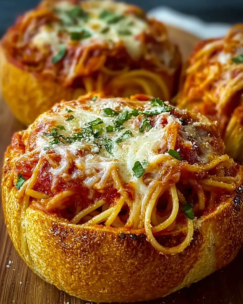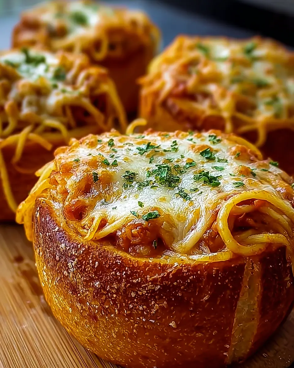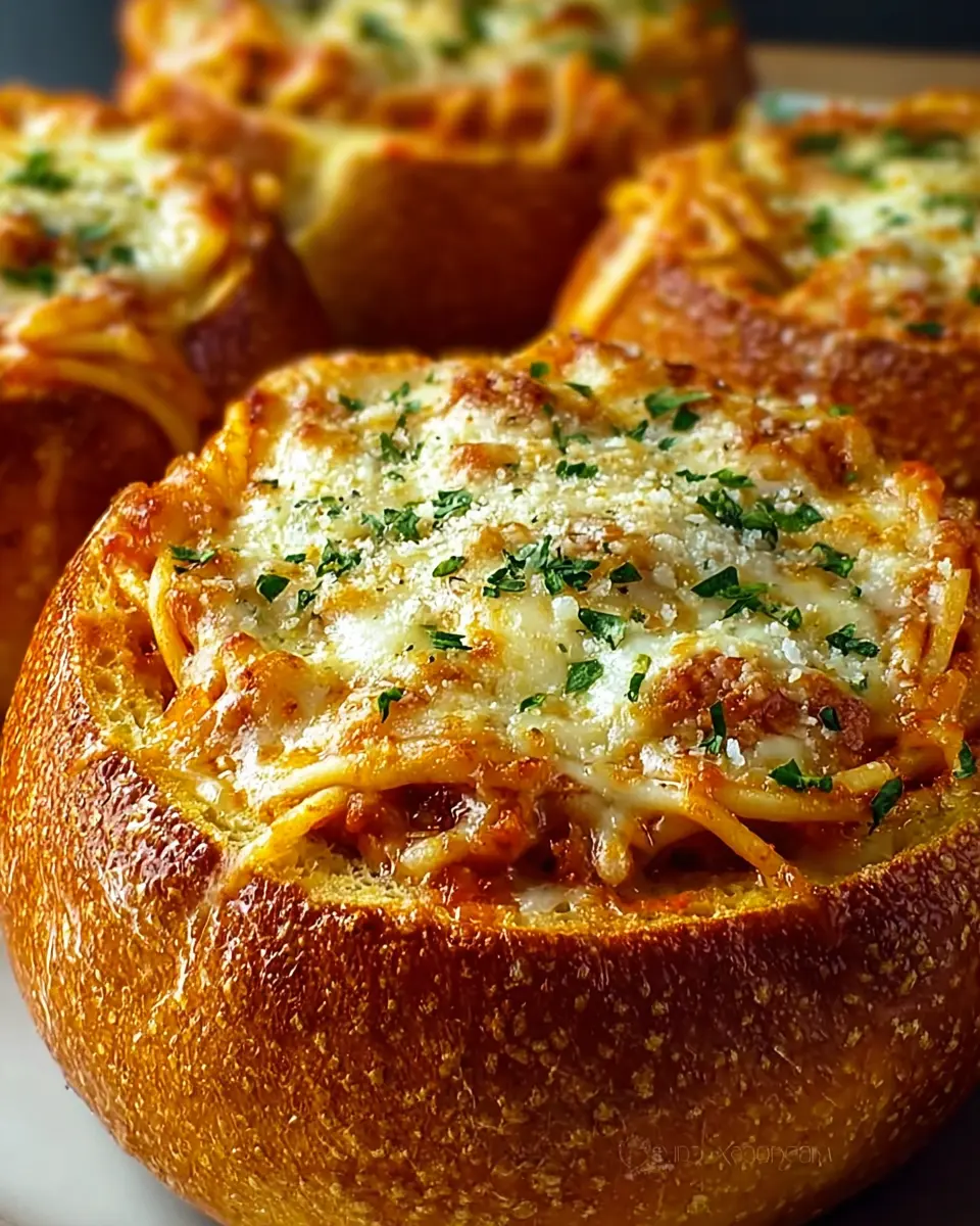 Spaghetti Garlic Bread Bowls