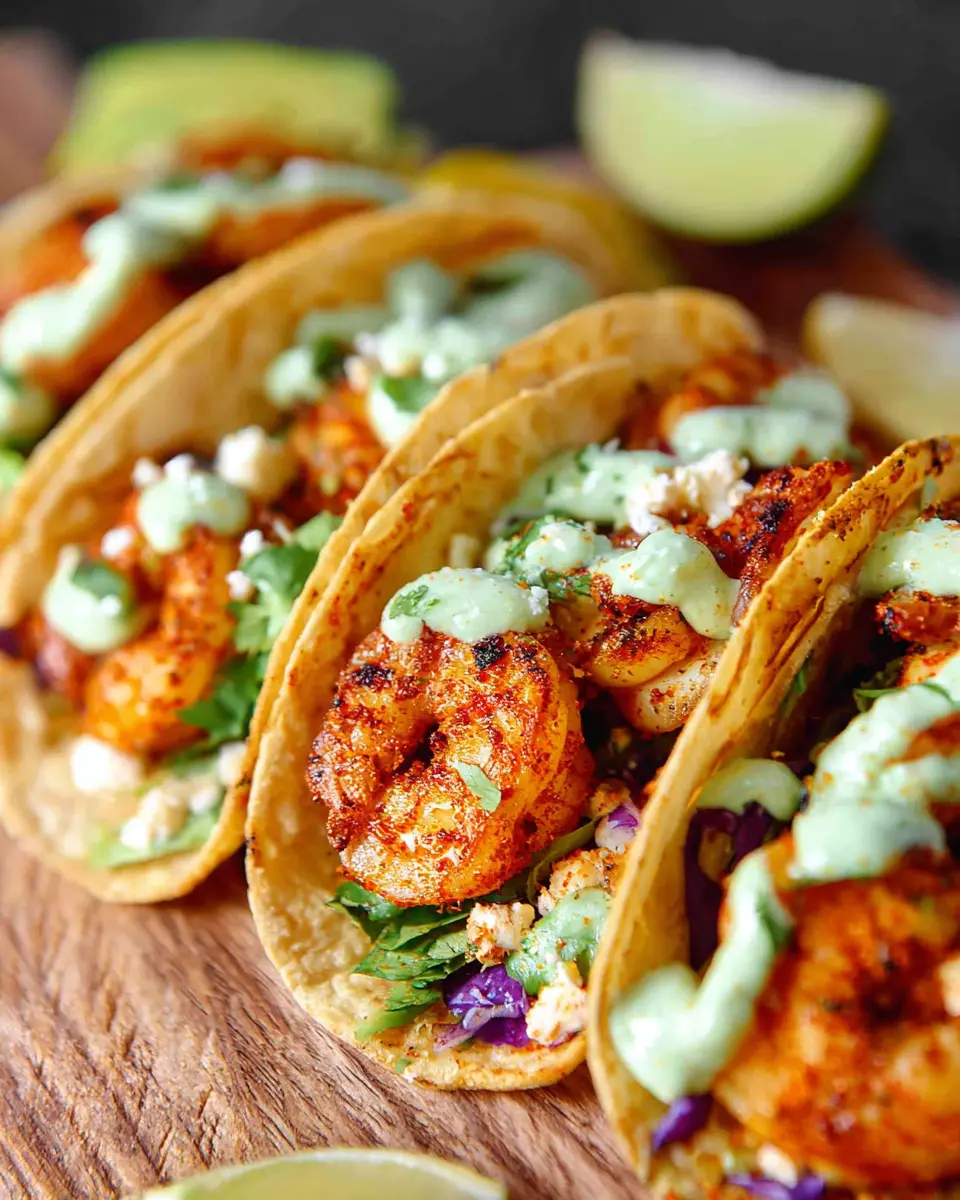 Spicy shrimp tacos are not just a meal; they're a flavor-packed experience! Perfect for a quick weeknight dinner, they bring together mouthwatering shrimp, creamy avocado crema, and fresh slaw in every bite. Elevate your taco night—your taste buds will thank you!