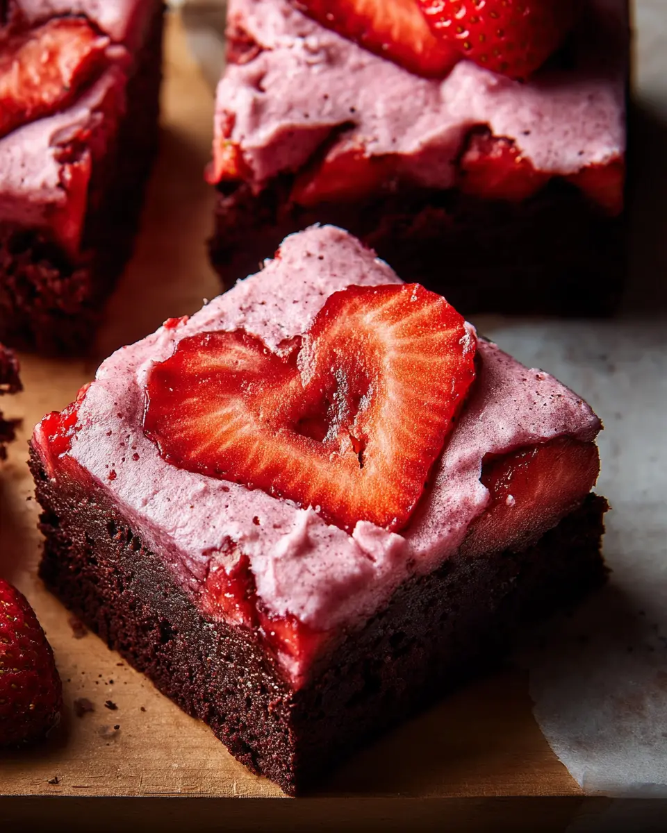 And there you have it—your beautifully crafted strawberry brownies are ready to be devoured! Enjoy the rich chocolate flavor complemented by the fresh strawberry sweetness.