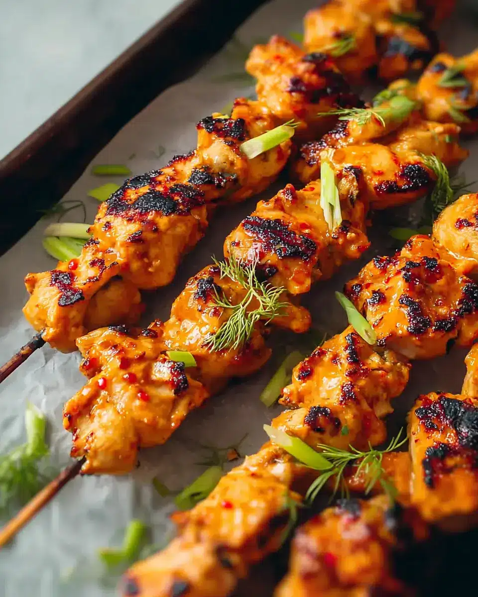 Hosting a gathering? Set up a DIY skewers station where guests can customize their own bang bang chicken skewers. Offer a variety of dipping sauces like sriracha mayo, peanut sauce, or teriyaki for added flair. Pair these tasty bites with finger foods like grilled veggies or mini spring rolls to create a fun atmosphere. It’s a great way to keep guests engaged and satisfied, while everyone enjoys the smokiness and spice of your delicious chicken!