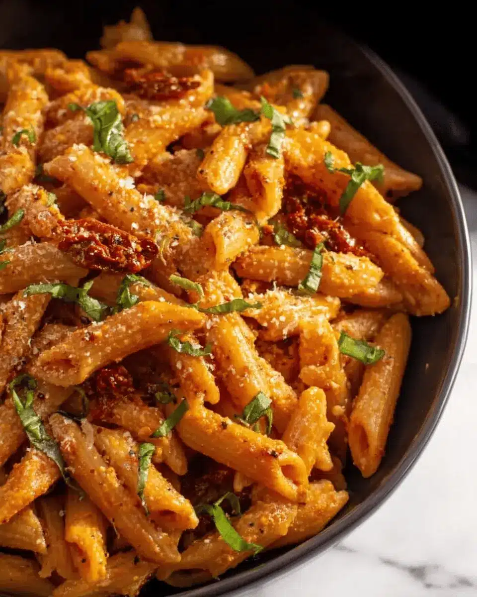 Don't hesitate to switch up the pasta! While penne is a fantastic choice, you can use anything from spaghetti to gluten-free options. Each pasta type offers a different texture and taste experience that can really complement the creaminess of the sun-dried tomato sauce. Plus, experimenting with whole grain or legume-based pastas can boost your meal’s fiber and protein content, catering to your health goals.