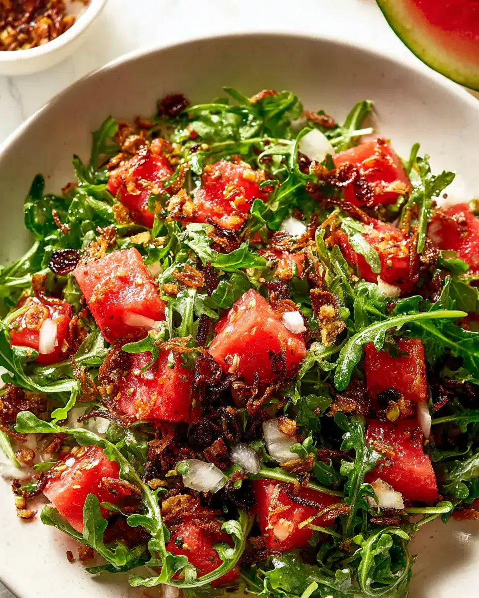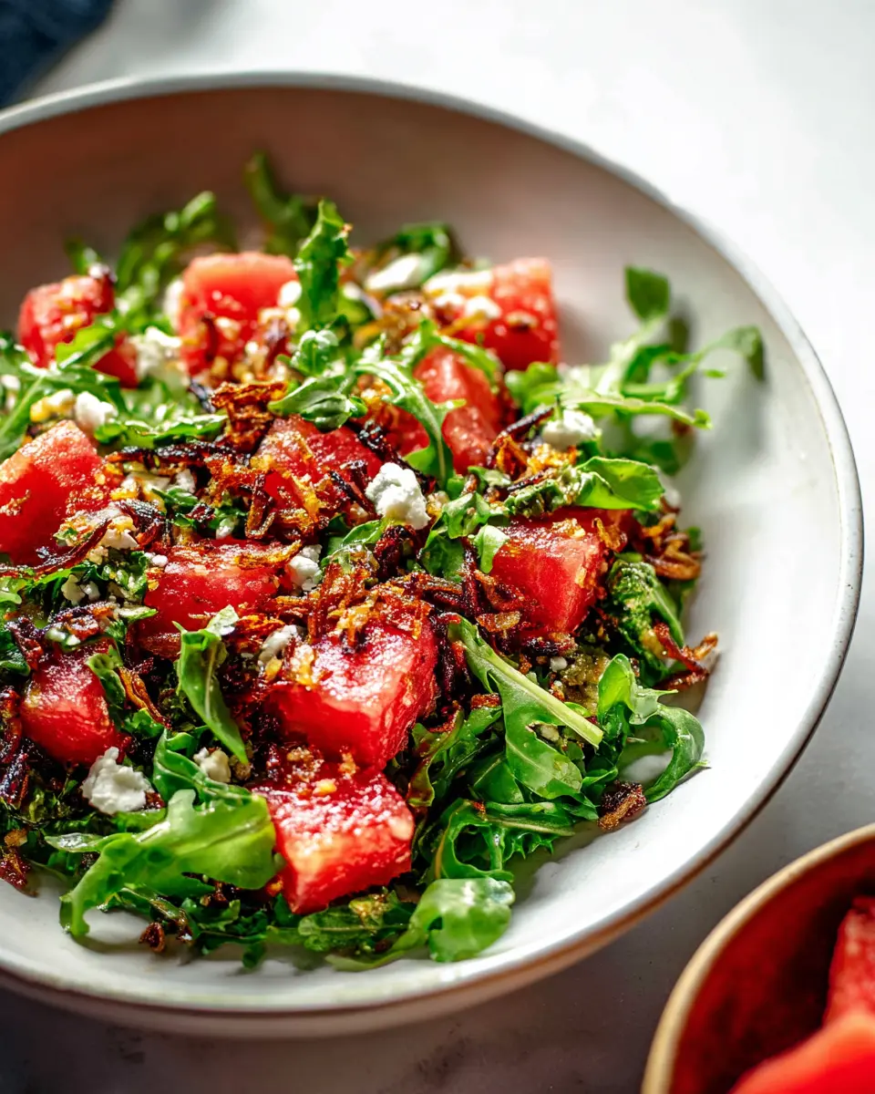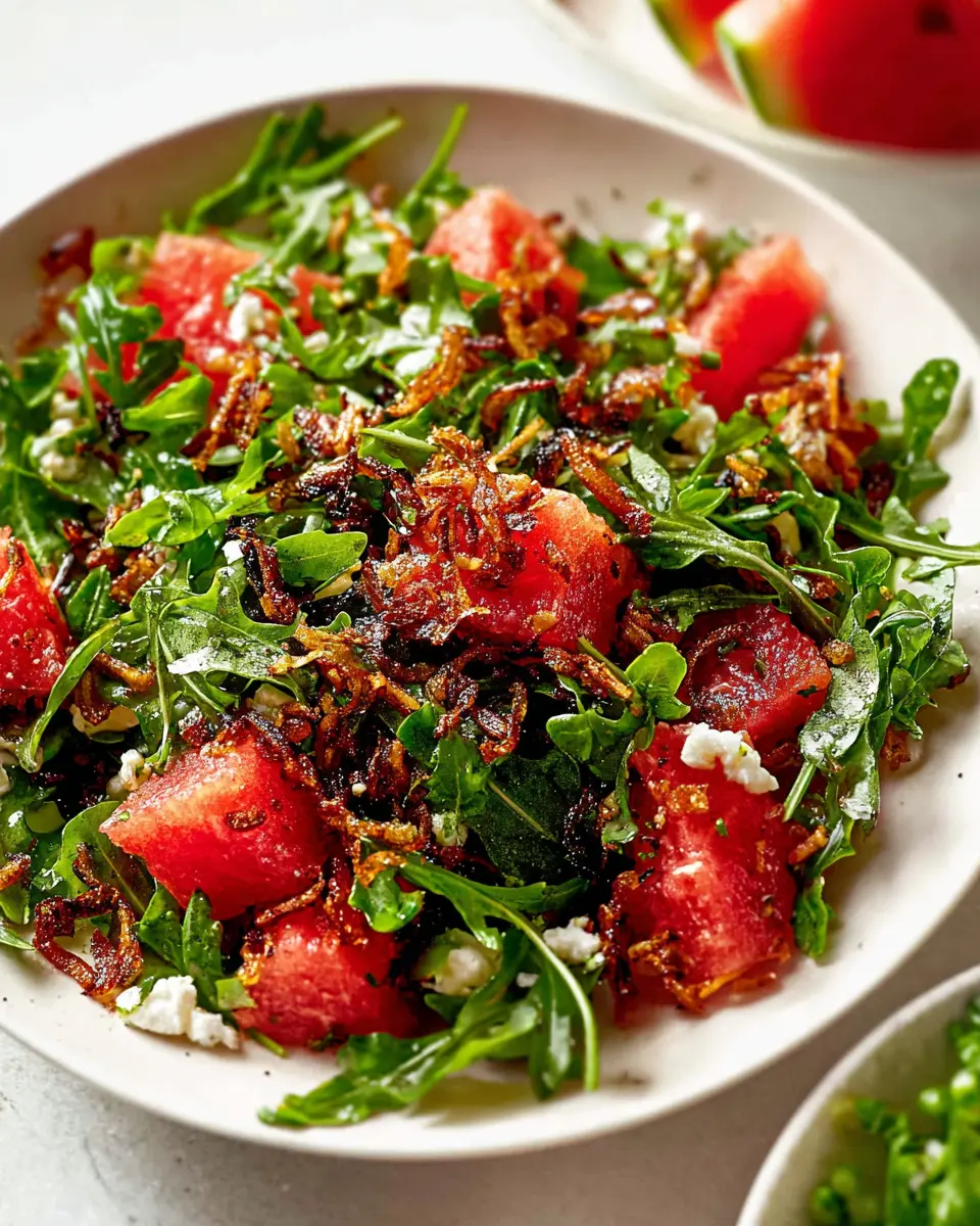Watermelon Arugula Salad with Crispy Shallots