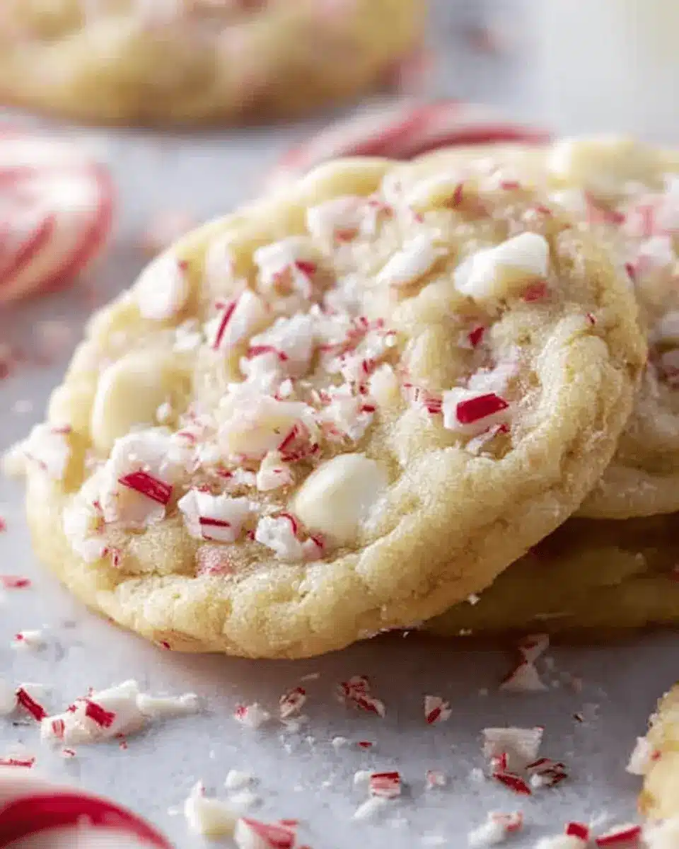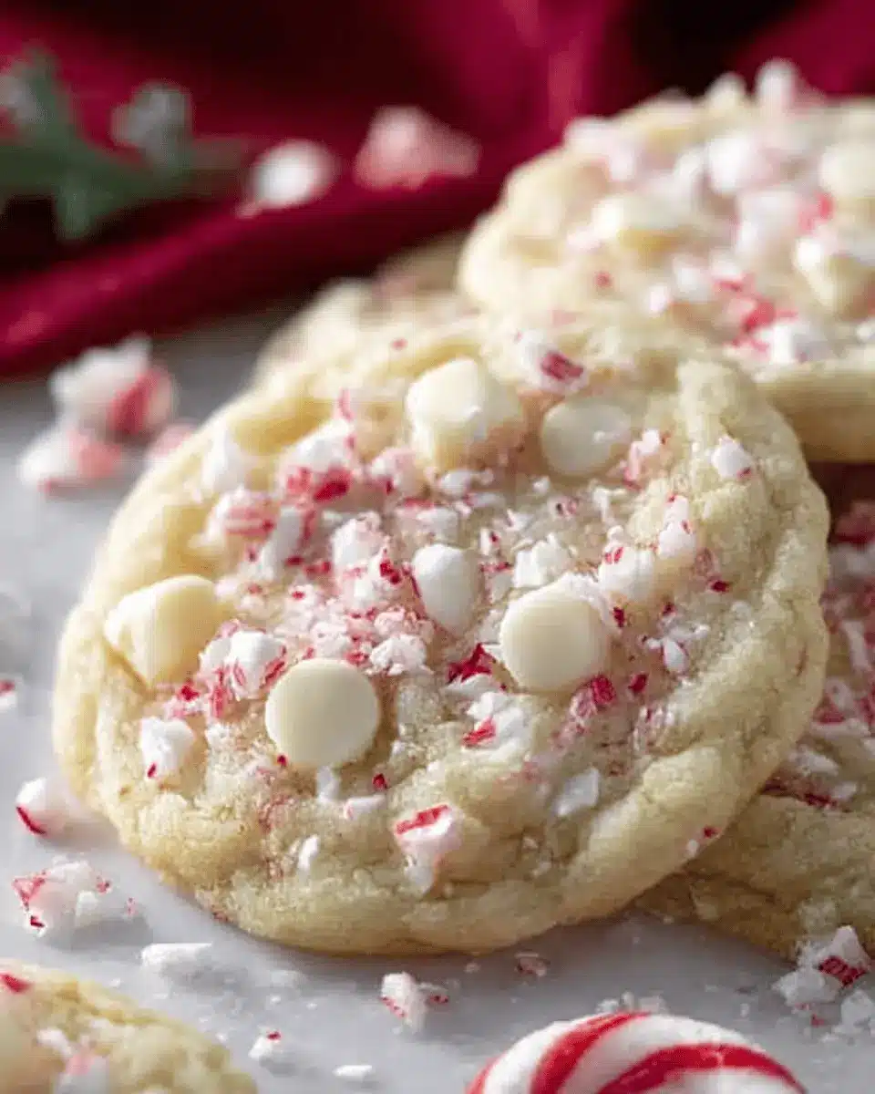 And let's not forget about the undeniable visual appeal! When you serve these cookies, their snowy white chocolate chips paired with vibrant red and white candy cane bits bring a festive touch to any dessert table.